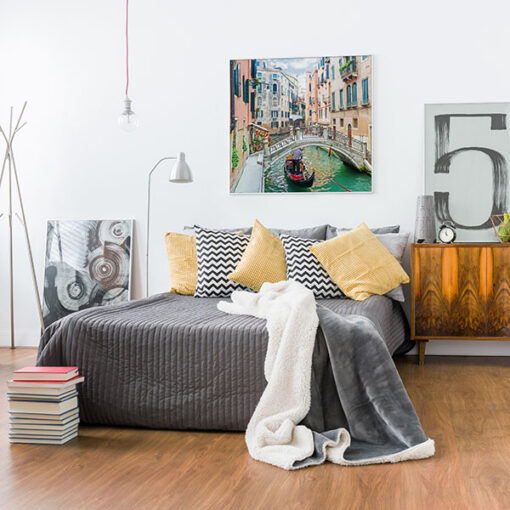 Este lienzo muestra una espectacular imagen de gran calidad disfrutando de las espectaculares vistas de los canales de Venecia en su típica góndola. El contraste de colores junto con el efecto semi-brillo de nuestro lienzo textil garantiza un aspecto real que dejará atónito a cualquiera que lo vea. Desde Tienda Rotulación recomendamos el uso de este lienzo para habitaciones, salones, oficinas, etc …