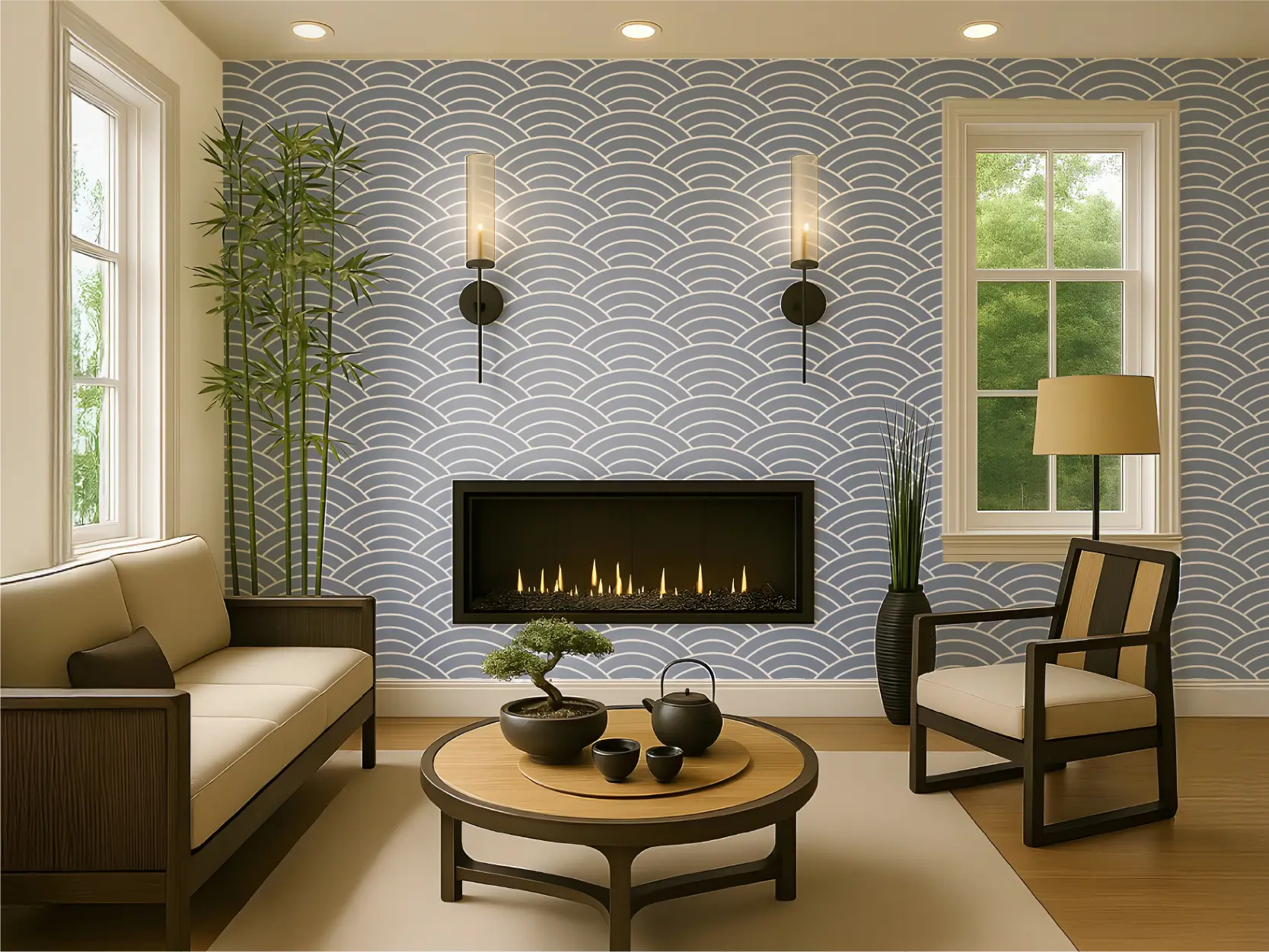 Papel pintado autoadhesivo con un estilizado diseño de Japonés Amanecer Negativo y acabado satinado. ¡Fácil de colocar sin cola! Ideal para salones, dormitorios o estudios.